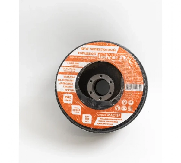 Круг Bohrer лепестковый торцевой КЛТ1 (прям.) Мастер 125х22 мм P60 (прокаленный оксид алюминия) (20