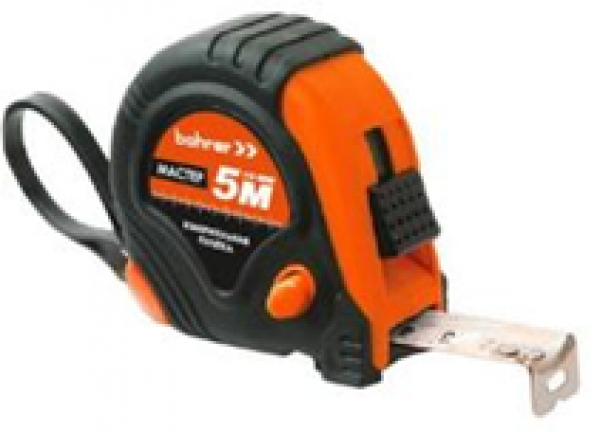 Рулетка Bohrer измерительная Стандарт 5м х 25мм, с фиксатором, обрезиненный ударопрочный корпус